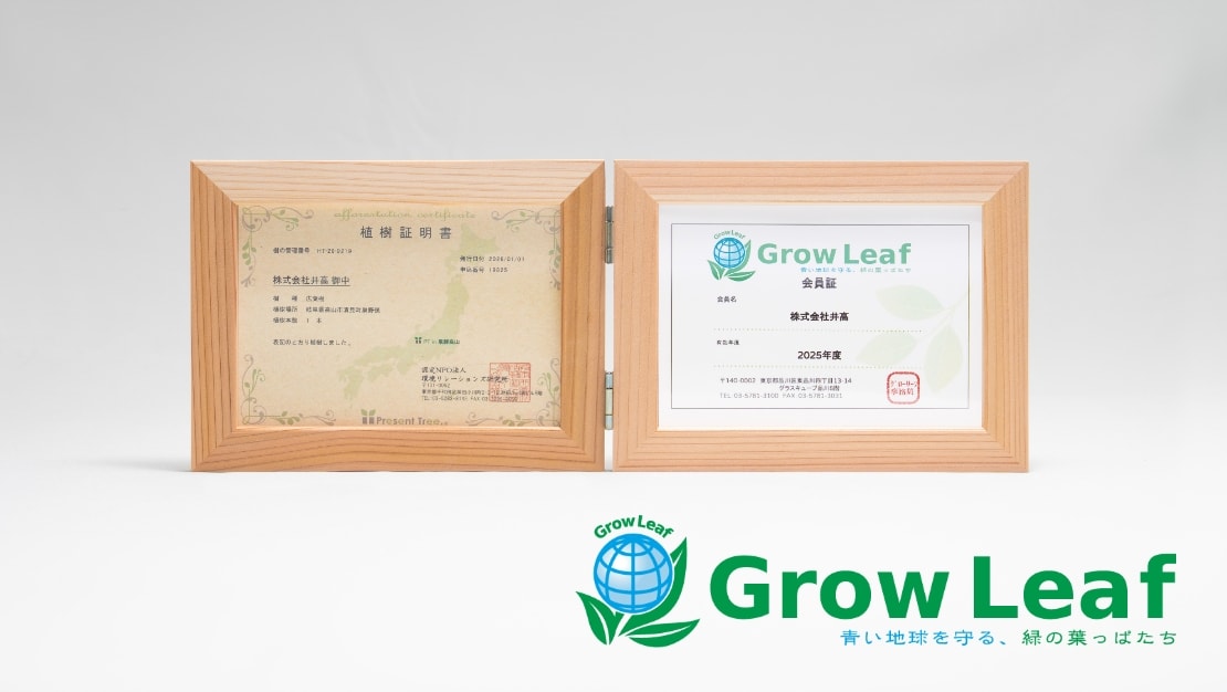 We contribute to reforestation and environmental conservation by taking part in the “Grow Leaf Project,” an environment conservation project led by Broadleaf Co., Ltd. that allows companies to participate.